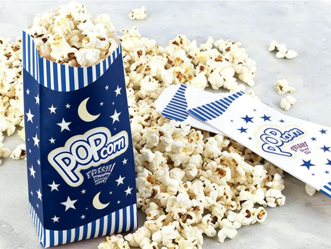 Popcorn paper bags combine durability and ample branding space, ideal for convenient, on-the-go enjoyment.